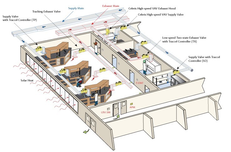 实验室排风系统 实验室内往往存在许多不利于人体健康的化学物质污染源,特别是有害气体,将其排除非常重要。但与此同时,能源往往会被大量的消耗,因而实验室的通风控制系统的要求渐高,从早期CV(定风量),2... 详细内容